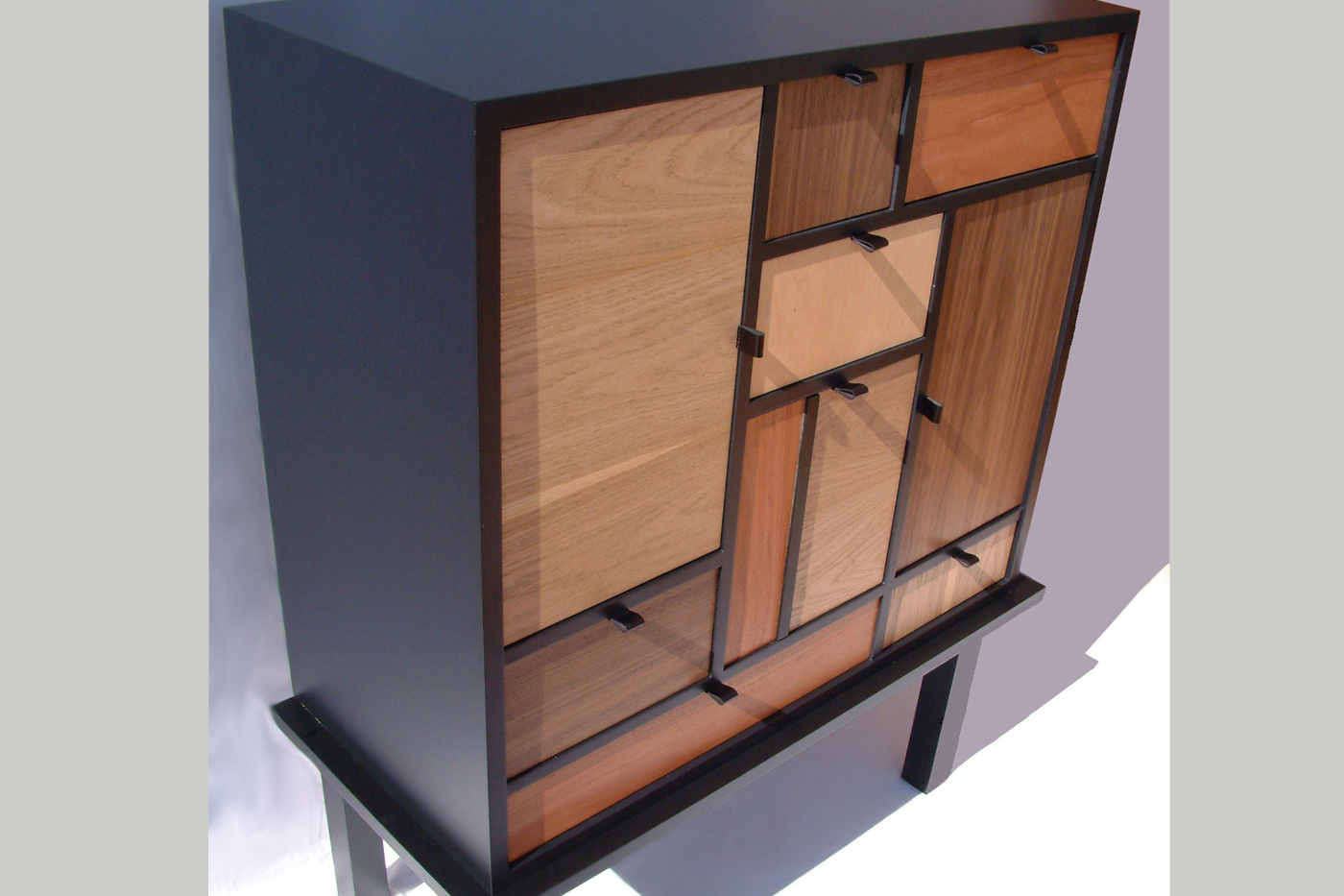 Acabados: Lacado en colores o chapas de madera natural barnizada y tiradores de piel natural.