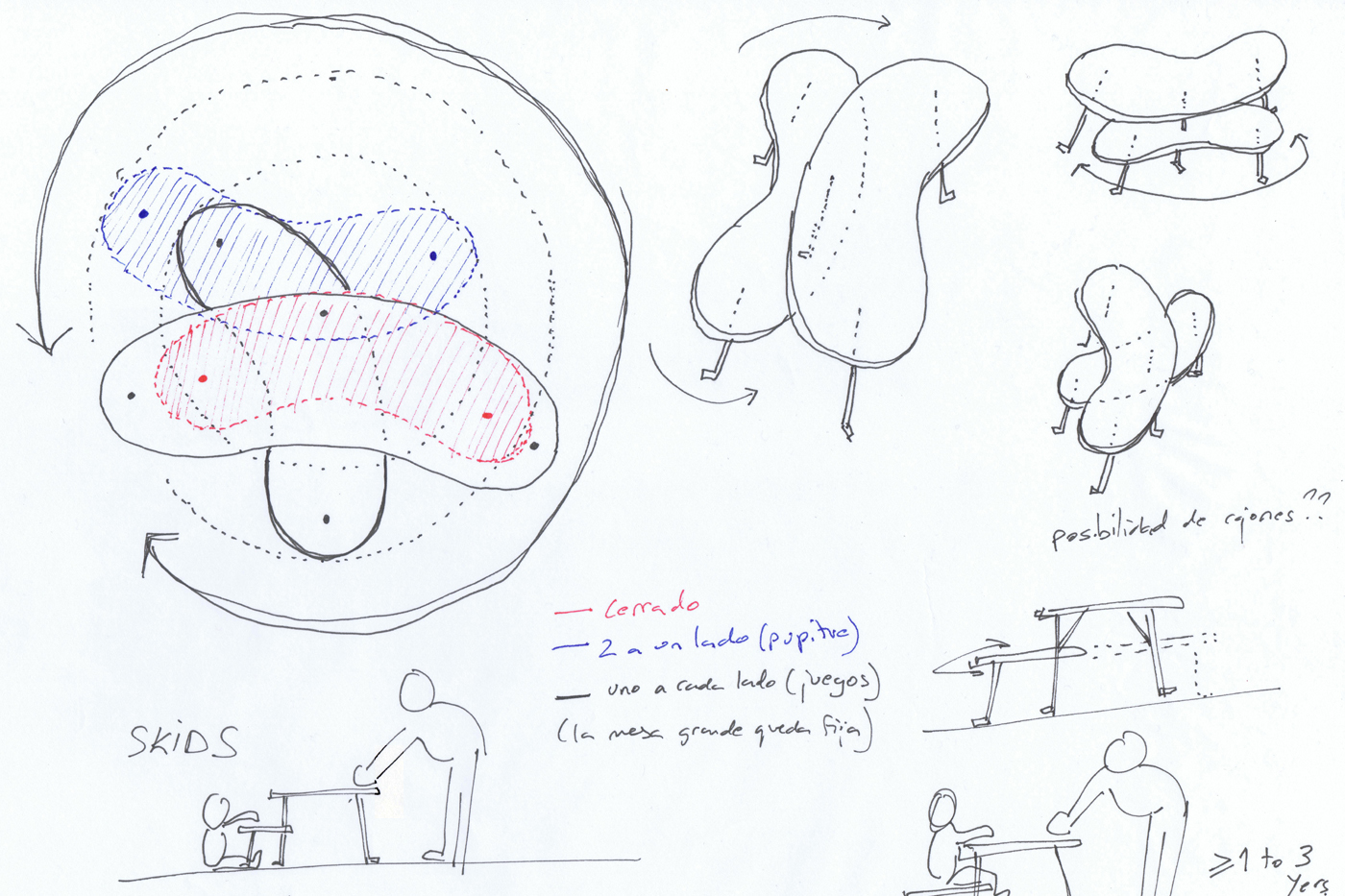 El prototipo de mesa-pupitre KIDS está pensado como mesa auxíliar o de centro; sus dos módulos giratorios le permiten ser un pupitre de trabajo, una mesa para jugar y otra para compartir con los amigos, padres, etc; con la particularidad de que se adapta perfectamente a las diferentes etapas de los niños gracias a sus diferentes alturas.