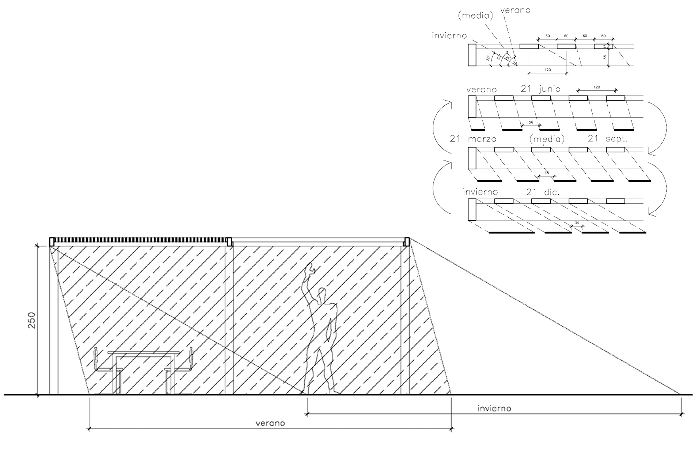 Encargo de una pérgola para terraza. Obra realizada en madera de pino y abeto laminada, tratada, y acabada con lasure en color Teka. Su singular diseño, que juega con las alturas y la orientación de las lamas, da como resultado un interesante juego de sombras que crea en esta terraza un espacio sombreado muy acogedor, ideal para disfrutar de unas bellas puestas de sol.
